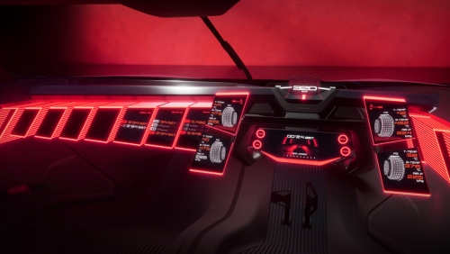 在R模式下,車內(nèi)亮起紅色燈光,以駕駛員為核心打造駕駛艙環(huán)境,有助于駕駛員集中注意力。儀表板上的面板向座椅空間延伸,以增強周圍的駕駛艙感觸。同時,圍繞方向盤排列的四個屏幕可以顯示輪胎抓地力、溫度、氣壓、剎車盤溫度、動力分配以及其它便于賽車發(fā)揮性能的重要信息。